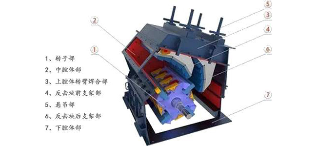 反擊破由轉子、板錘、打擊板、機架、反擊板、傳動部件等組成,打擊板剛性連接在轉子上。
