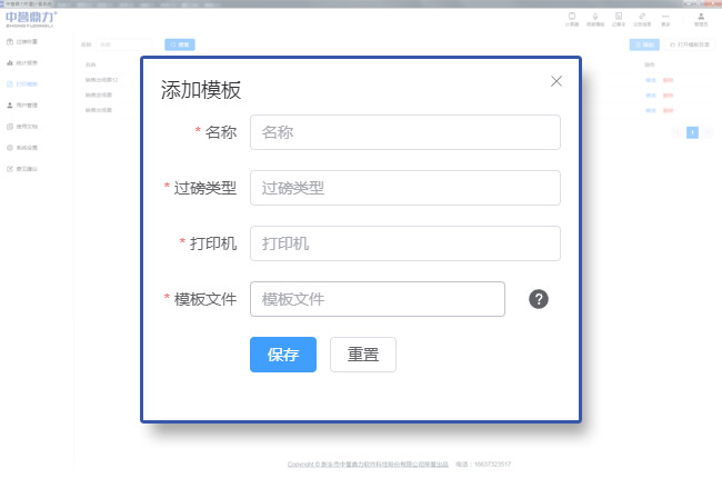可添加、刪除票據模板,并根據系統內置的變量,對模板中的模板名稱、過磅類型、模板文件名等自定義設置,根據不同場景選擇打印票據模板;