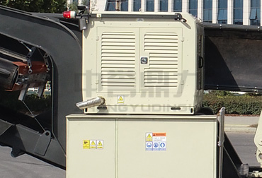 履帶移動錘式破碎站的動力系統由柴油發電機和行走履帶組成,柴油發電機鏈接液壓泵,履帶在液壓泵的驅動下工作,該設備可油電兩用,有條件的話直接接通市電,不方便接通市電可以用柴油發電機,無需外部電源。