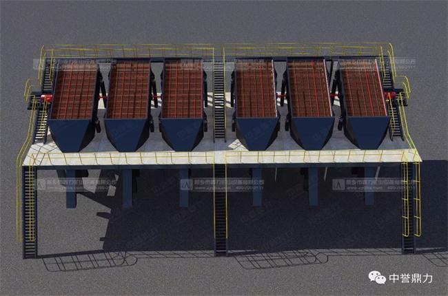 1.3 篩分環節采用36臺YKQ系列振動篩,質量更輕、能耗更低,處理量更大、運行更平穩。三臺振動篩并聯的設計,可以使用1臺電機帶動3臺振動篩,單臺功率更低。