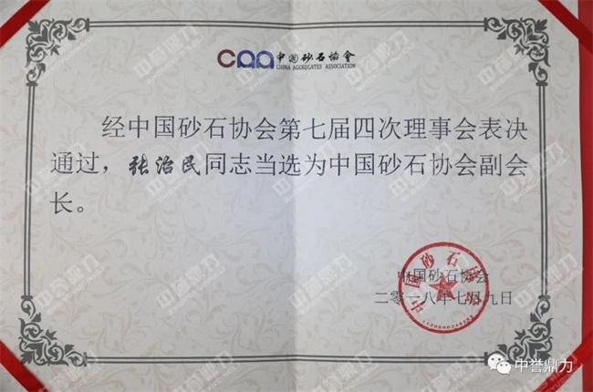 經(jīng)中砂石協(xié)會第七屆四次理事會表決通過,中譽鼎力智能裝備有限公司董事長張治民當選中砂石協(xié)會副會長!