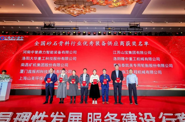 表彰先進,樹立典范,推動砂石行業向更高層次發展,在2023年度砂石及裝備行業表彰會上——河南中譽鼎力智能裝備有限公司喜獲全國砂石骨料行業“專業運營/運維服務商”和“優秀裝備供應商”兩項榮譽表彰;中譽鼎力合作企業甘肅平涼新世紀建材、河南鶴壁淇縣恒源礦業、重慶中材參天建材等相關項目獲評“2020年度綠色砂石基地”!