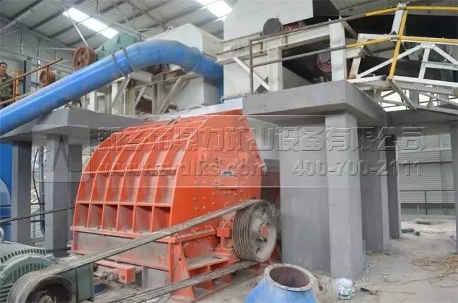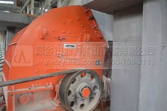 上圖為生產(chǎn)線上配置的頭破設(shè)備,選用的型號(hào)為內(nèi)目前錘式破碎機(jī)單臺(tái)產(chǎn)量的PCZ2125破碎機(jī)設(shè)備,單臺(tái)時(shí)產(chǎn)量可以達(dá)到2500噸以上,是由我們公司自主研發(fā)生產(chǎn)的。