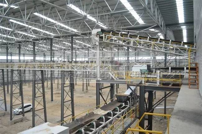 上圖為成品料料倉(cāng),布料皮帶機(jī)利用移動(dòng)小車(chē)布料,提高石料存料量,每種產(chǎn)品存料量達(dá)到2.5萬(wàn)噸,總存料量達(dá)到10萬(wàn)噸。