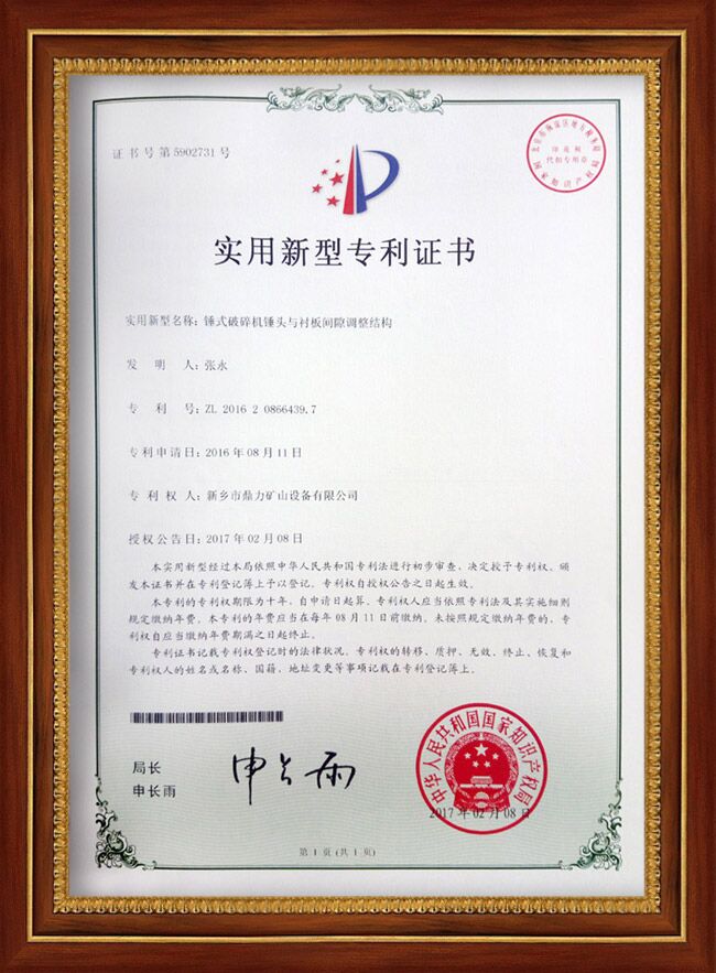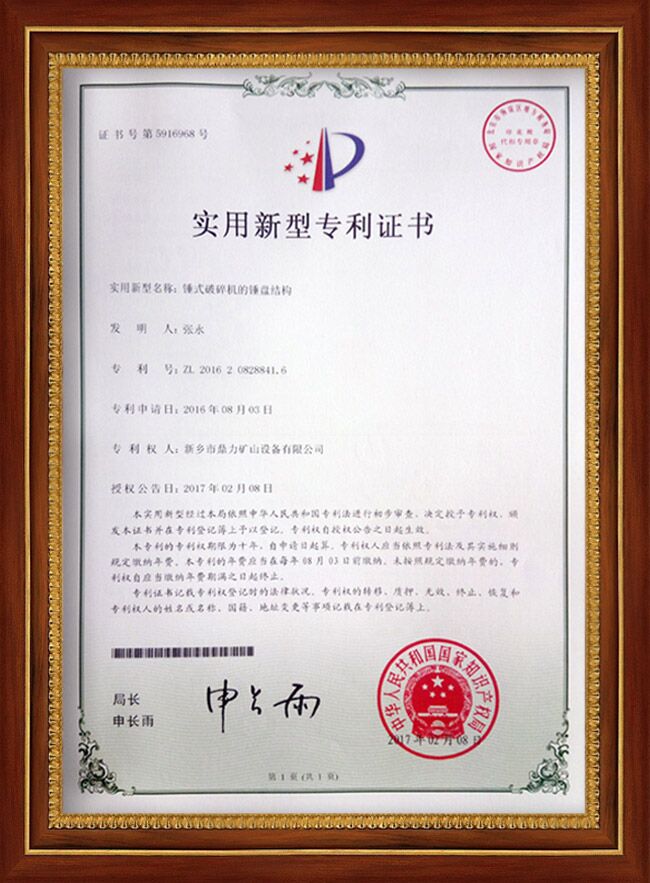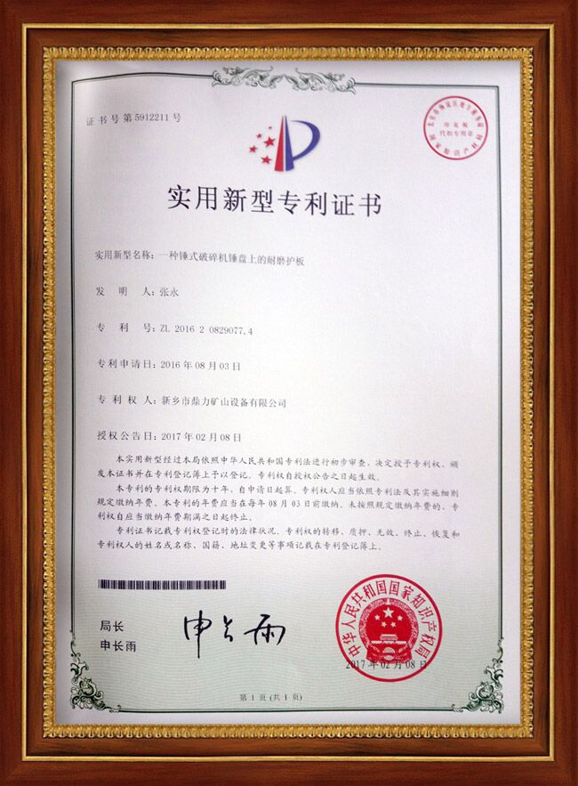摘要:中譽鼎力取得了豐碩的成果,獲得家多項,包括錘頭襯板、護邊、錘式破碎機錘盤等多個方面。