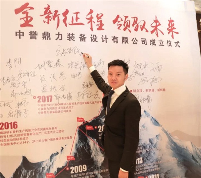 中譽(yù)鼎力裝備設(shè)計(jì)公司總經(jīng)理馮濤在簽字墻上簽名
