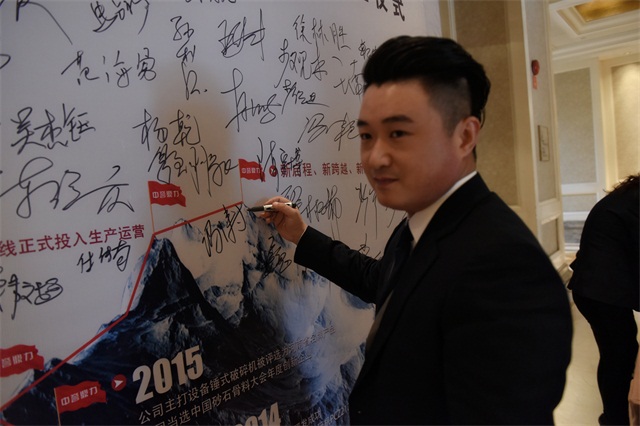 中譽(yù)鼎力裝備設(shè)計(jì)公司副總經(jīng)理原文秋在簽字墻上簽名
