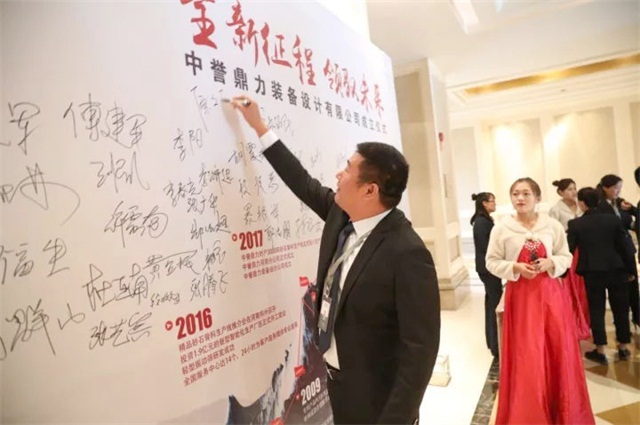 中譽(yù)鼎力裝備設(shè)計(jì)公司董事長(zhǎng)張治民在簽字墻上簽名