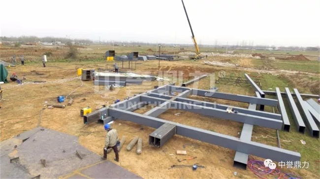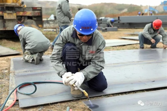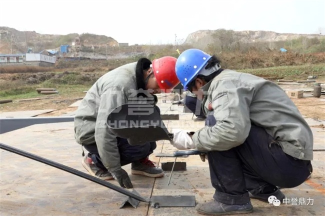 在建設現場我們看到中譽鼎力安裝工人正在緊張地焊接組裝設備,建設安裝順利完成。