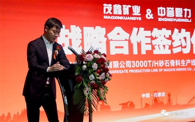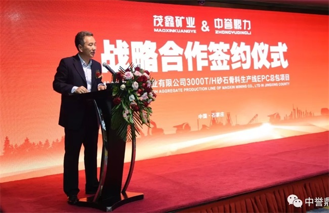 河南中譽鼎力智能裝備有限公司董事長張治民在致辭中表示,這個儀式,標志著兩家企業的戰略合作正式啟動。中譽鼎力有信心,把茂鑫礦業時產3000噸生產線建成當地環保生產線的榜樣。簽約儀式完成以后,明天項目各部門就會進入工地開始前期各項工作。中譽鼎力作為項目的EPC總承包商,會在短時間內,把環保、智能的砂石骨料生產線呈現在大家面前。