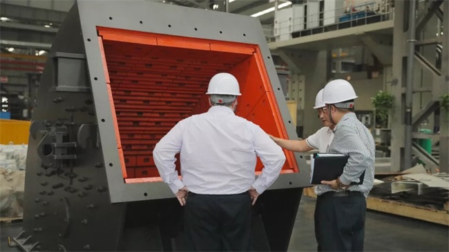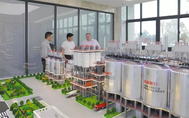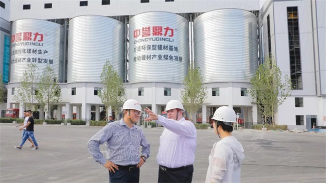 隨后,考察團一行來到了中譽鼎力智能裝備新廠區(qū)。馮總為考察團成員詳細介紹了中譽鼎力五位一體循環(huán)建材產(chǎn)業(yè)園沙盤。該項目體現(xiàn)了產(chǎn)業(yè)集聚和循環(huán)鏈接效應(yīng),在提高礦石資源綜合利用率和產(chǎn)品附加值、控制原材料運輸成本等方面具有突出優(yōu)勢。