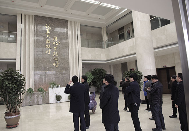 隨后,考察團又來到中譽鼎力智能裝備有限公司,對中譽鼎力的企業文化進行了了解,并參觀了智能化一體生產車間。