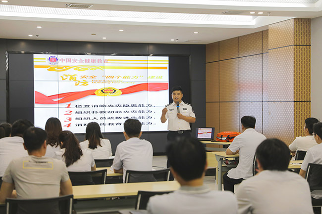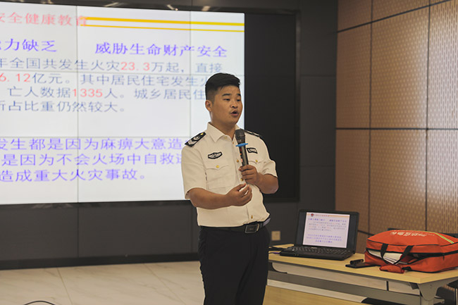 在之后的消防安知識(shí)培訓(xùn)講座上,張?zhí)m濤教官從實(shí)際案例出發(fā),圍繞消防安“四個(gè)能力建設(shè)”、應(yīng)急處置程序和逃生技巧等內(nèi)容進(jìn)行了詳細(xì)而具體的講解。