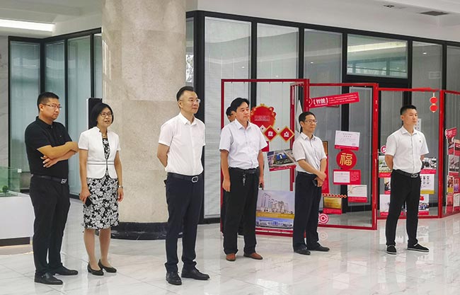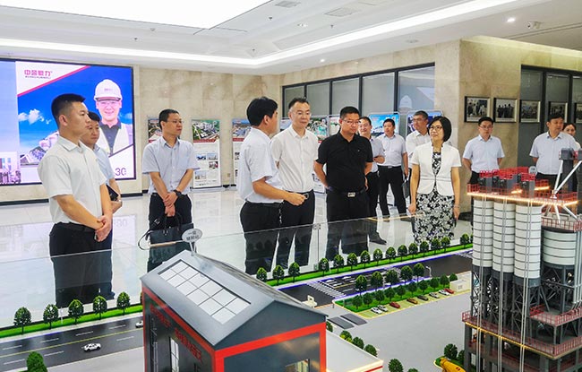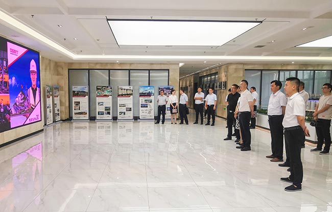 在中譽鼎力智能裝備有限公司綜合辦公樓,移動公司考察團先后參觀了中譽鼎力企業文化墻、礦山管理云數據和多位一體循環建材產業園項目沙盤,對中譽鼎力主營業務及近年來發展情況有了進一步了解。