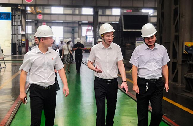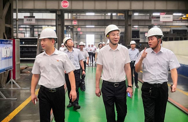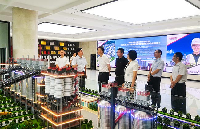 之后,考察團一行實地參觀了中譽鼎力智能化一體生產車間,對中譽鼎力智能化車間建設、礦山設備制造等情況進行了高度評價。
