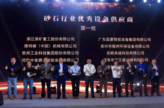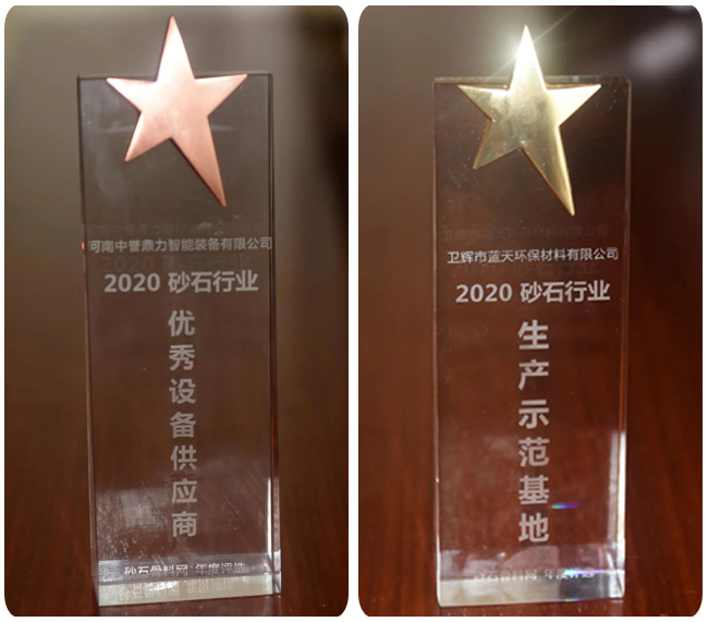 11月18日下午,在砂石骨料網(wǎng)年會頒獎環(huán)節(jié),河南中譽鼎力智能裝備有限公司再次榮獲“砂石行業(yè)設(shè)備供應(yīng)商”稱號,中譽鼎力投資建設(shè)的項目——衛(wèi)輝市藍(lán)天環(huán)保材料有限公司“多位一體”大型建材項目獲評“砂石行業(yè)生產(chǎn)基地”!