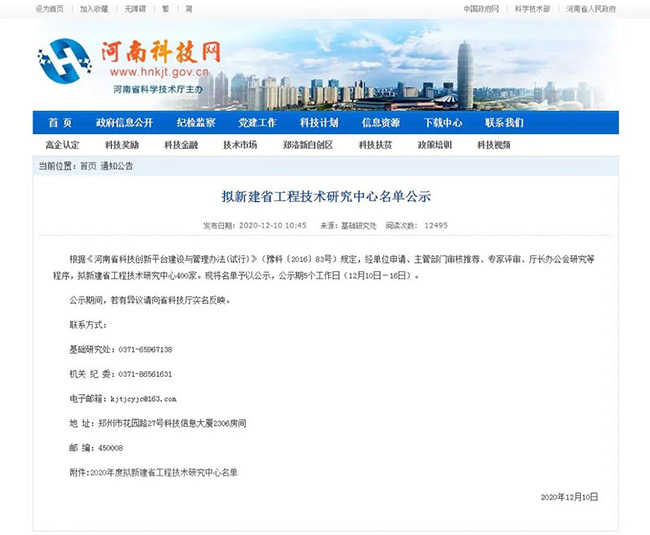 根據(jù)《河南省科技創(chuàng)新平臺建設(shè)與管理辦法(試行)》(豫科〔2016〕83號)規(guī)定,經(jīng)單位申請、主管部門審核、評審、河南省科學(xué)技術(shù)廳廳長辦公會研究等程序,12月10日,省科學(xué)技術(shù)廳基礎(chǔ)研究院在河南科技網(wǎng)對擬新建省工程技術(shù)研究名單進行公示。