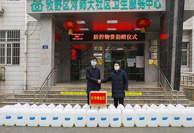 3月9日上午,中譽鼎力向河南師范大學捐贈一批總價值近10萬元的防疫物資(包括紅外測溫儀123支、84消毒液500千克、醫用酒精400千克),用于冠狀病毒肺炎疫情的防控工作,以實際行動踐行企業責任與擔當,為堅決打贏疫情防控阻擊戰貢獻一份力量。