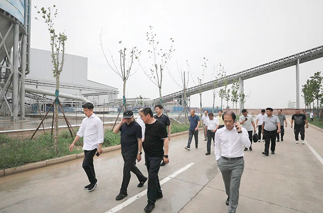 考察遠(yuǎn)大新材項目生產(chǎn)線及成品料倉