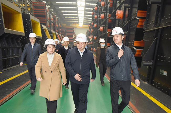 接著,調研導實地參觀了中譽鼎力智能化一體生產車間,深入了解公司礦山裝備制造及智能化車間建設情況。