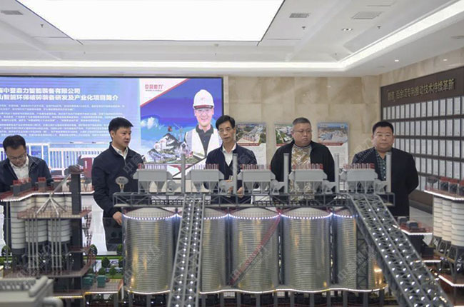 礦業(yè)報主任、席記者王瓊杰,砂石協(xié)會副秘書長趙婧、楊曉東,行業(yè)部部長劉魁,砂石協(xié)會兼職副秘書長張聯(lián)濤,中關村綠色聯(lián)盟副秘書長文靜等同行。中譽鼎力智能裝備有限公司董事長張治民、總經(jīng)理楊乾程接待,并介紹公司相關情況。