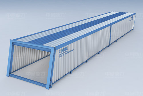 內(nèi)部設(shè)計有電纜橋架固定位置,現(xiàn)場吊裝前可直接將頂部密封后組裝完成,整體吊裝