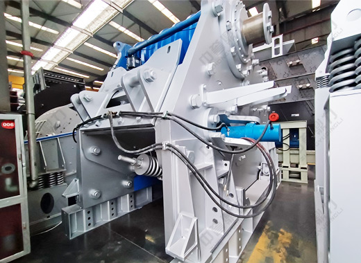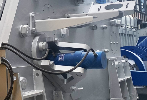 液壓保險裝置可以提高設備運行的性和穩定性,而且當破碎腔內落入大塊非破碎物料時,設備發出故障提醒,停機后調節油缸位置,使其后退,然后使得大塊物料從排料口落下,再重新開機破碎;