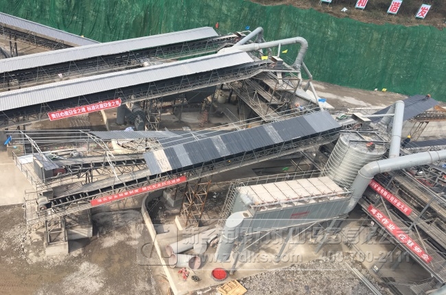 上圖為貴州遵義同興源建材時(shí)產(chǎn)1000噸骨料生產(chǎn)線生產(chǎn)現(xiàn)場(chǎng),排列整齊的皮帶輸送帶有序的運(yùn)送骨料,在一些皮帶輸送機(jī)密集的區(qū)域,設(shè)置了脈沖袋式除塵器,也是由中譽(yù)鼎力研發(fā)的,將設(shè)備安裝在基臺(tái)上方,占地面積小,節(jié)省基建投資。