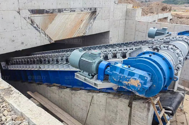 01、礦石通過板喂機進入重錘破進行初級破碎;