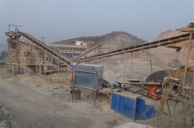上圖是石料生產線生產現場,生產線上選用了我們公司生產的DMCA除塵器設備,可以用以吸收石料生產線中產生的粉塵,凈化了整體生產環境。