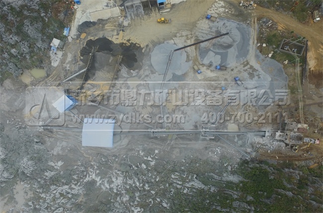 從這個時產350噸碎石制砂生產線圖集上可以看到,排列整齊的運輸車輛從生產線上將成品物料運送走,每一個出料口出產不同種類的成品物料,礦區道路被部硬化,保護了礦區的生產環境。
