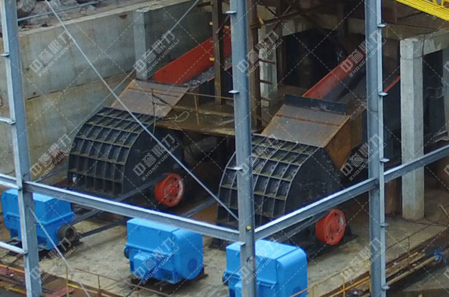 大塊石料經(jīng)ZGC2050振動給料機(jī)均勻、連續(xù)的送到PCZ1620重錘破進(jìn)行破碎,破碎后的物料被送到中轉(zhuǎn)料倉,再由兩臺ZGC2038給料機(jī)送到兩臺PC1220整形錘破進(jìn)行整形加工,經(jīng)過再次加工的物料被輸送到一組3臺3YKZ3070振動篩進(jìn)行篩分,篩分出1-3以下的石料、土石粉和一部分回料,1-3以下的料被輸送到下一組3臺3YKZ3070振動篩進(jìn)行再次篩分,回料被返料帶返回整形錘破進(jìn)行再次破碎,形成一個閉路循環(huán),終篩分出1-3/1-2/0-5和石粉四種成品料。