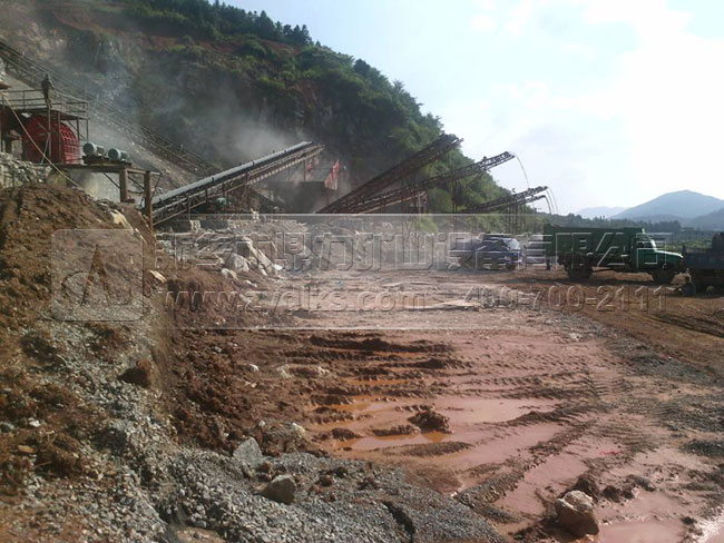• 設備配置:PCZ1512重型錘式破碎機、ZGC1250振動給料機、YK1860振動篩*2臺等等