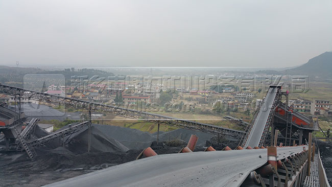 時產400-500噸砂石料生產線配置方案:PCZ1615重型錘式破碎機、ZG1528振動給料機、3YKZ2670振動篩等等