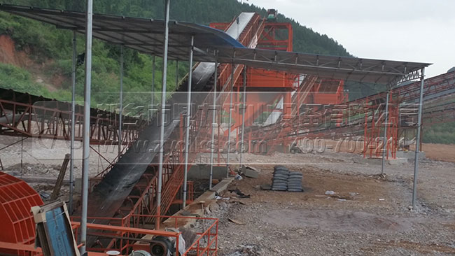 日產(chǎn)6000-8000噸石子生產(chǎn)線配套設備:PCZ1620重型錘式破碎機、ZG2028振動給料機、3YKZ2070振動篩*2臺等等
