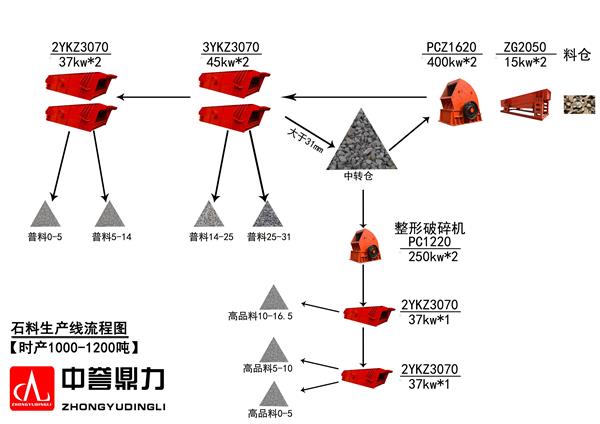 目前各地道路交通、城市房屋、水利橋梁等項目工程深入推進,環保政策持續收緊,造成石料需求嚴重不足的局面,因此一些人發現了石料生產項目的商機。但據中譽鼎力了解,這些人士在投資時難免存在疑問,比如很多人不知道石料生產的工藝流程圖是什么,本文就以時產1000噸的為例,給大家講解下。