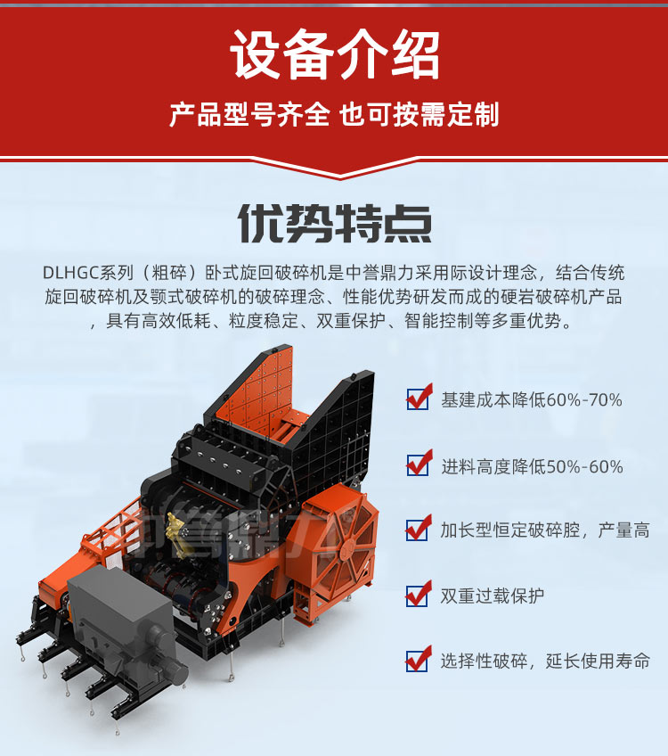 該設(shè)備的進(jìn)料粒度在≤1525mm,出料粒度可達(dá)≤230mm左右,也就是說可以把普遍的粒度在1525毫米左右的物料,破碎層粒度在230毫米左右的物料。