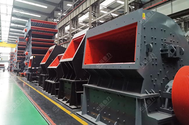 主要靠高速旋轉的轉子,帶動錘頭與物料發生沖擊碰撞完成破碎。物料從上方進入破碎腔,先受到高速運動的錘頭沖擊,形成初次破碎,與此同時會獲得很高的動能,高速撞向機殼內壁的反擊板,形成次破碎,機腔內的物料由于相互撞擊也會形成程度的破碎,滿足粒形要求的被排出機腔,其余物料在機腔內繼續破碎整形,直到滿足要求被排出。