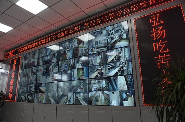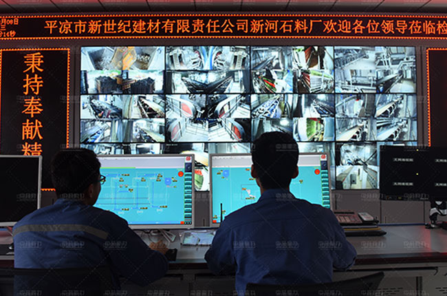 石料廠總控制室,從監(jiān)控可清楚的看到生產(chǎn)線各設(shè)備的運行情況